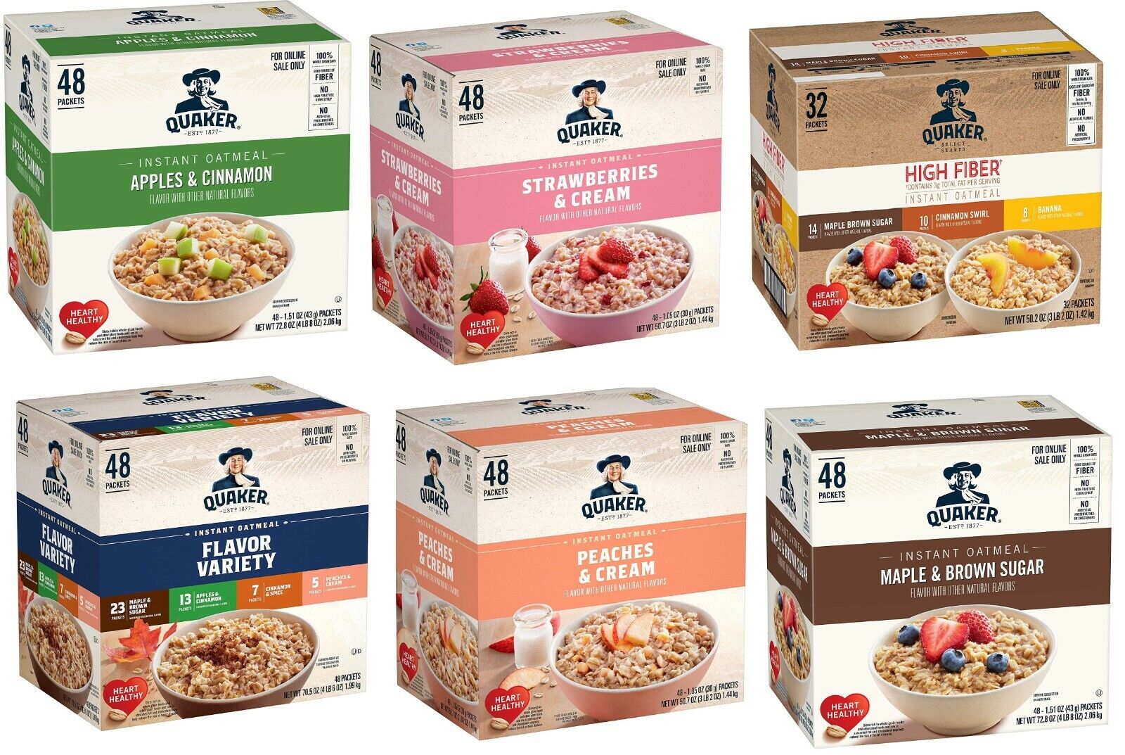 Single-serving packets with flavors like Cinnamon & Brown Sugar, Maple & Brown Sugar, Apples & Cinnamon, and more.